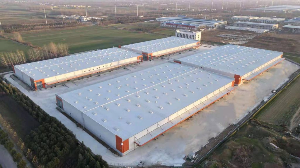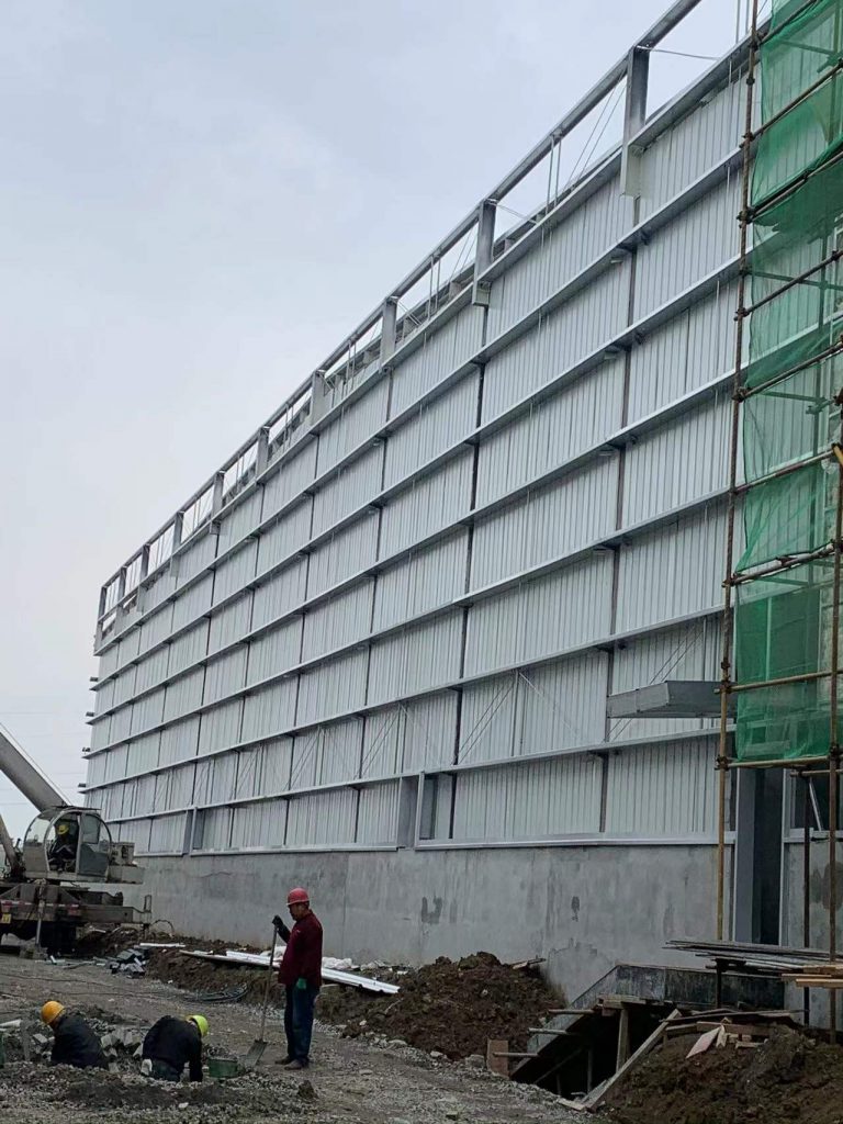 參建豐樹駐馬店現(xiàn)代物流園項(xiàng)目由4個(gè)單體倉(cāng)庫(kù)組成,檐口高度為10.2米。工程地點(diǎn)位于河南省駐馬店市創(chuàng)業(yè)大道與汝寧大道交叉口東南側(cè)。本工程鋼結(jié)構(gòu)安裝的主要構(gòu)件有鋼柱、屋面梁及支撐桿件、柱間支撐、水平支撐、檁條、圍護(hù)板材等。