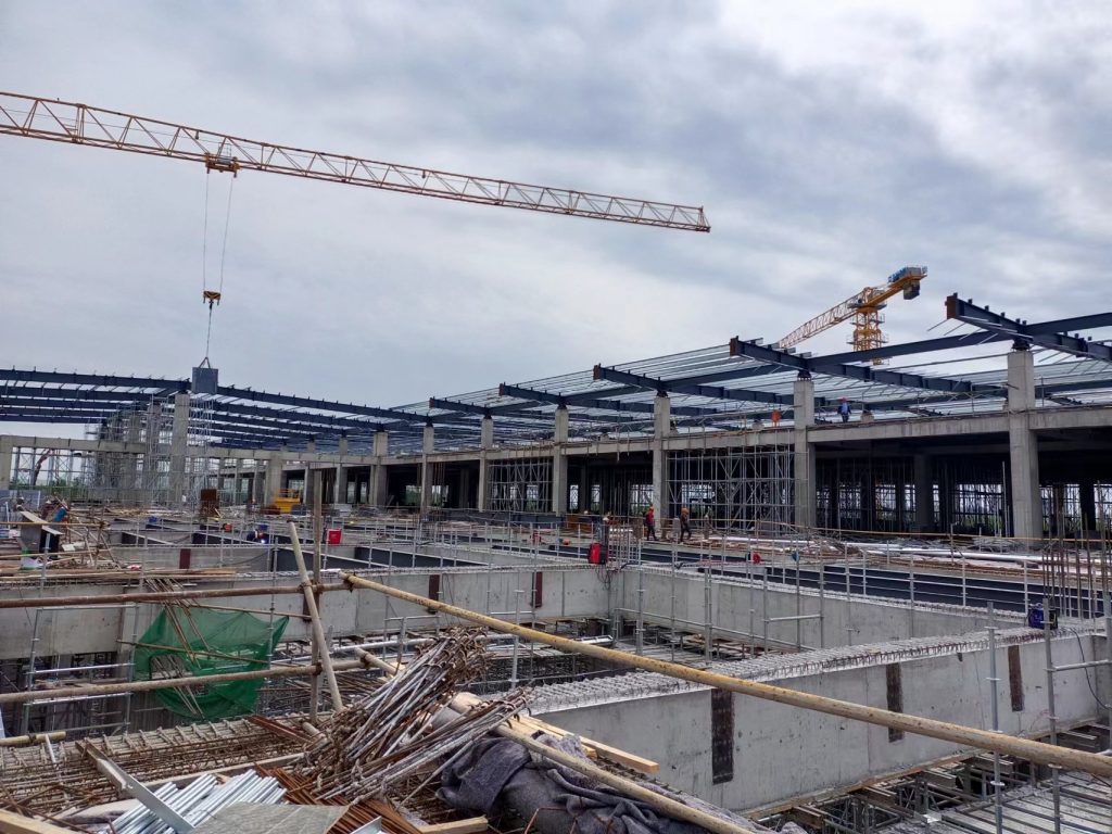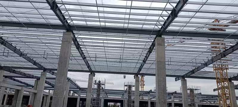 青島即發(fā)智能化紡紗車間項目由1個單體倉庫建筑面積約 49892 ㎡,其余部分為土建附屬用房組成;檐口高度為7.3米。工程地點位于山東省青島市即墨區(qū)龍山街道即發(fā)集團龍山工業(yè)園內(nèi)。本工程鋼結(jié)構(gòu)安裝的主要構(gòu)件有鋼柱、屋面梁及支撐桿件、柱間支撐、水平支撐、屋面檁條、屋面圍護板材等。