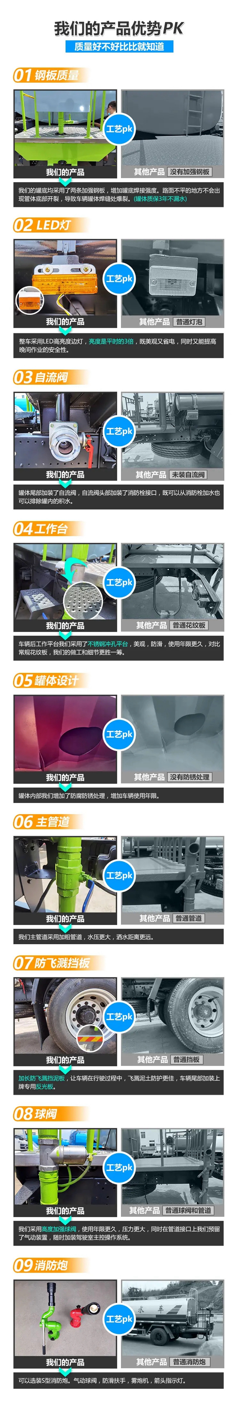 其他 | 該車(chē)主要用于城鄉(xiāng)園林綠化、噴灑等;主要裝置為罐體.罐體有效容積:12.16立方米.罐體外形尺寸(長(zhǎng)×長(zhǎng)軸×短軸)(mm):5000×2350×1500,4800×2370×1550.整車(chē)外形尺寸長(zhǎng)/軸距/后懸(mm)對(duì)應(yīng)關(guān)系:8600/4700/2455;8400/4700/2255;8400/4500/2455;8200/4500/2255.僅選用4700,4500mm軸距.側(cè)、后防護(hù)材質(zhì)均為Q235,連接方式:左右側(cè)面防護(hù)采用螺栓加焊接連接,后部防護(hù)采用焊接連接,后部防護(hù)裝置斷面尺寸(寬×高)50×120(mm),后部防護(hù)離地高度:490mm.選裝臥鋪側(cè)窗,選無(wú)遮陽(yáng)罩,選裝導(dǎo)流罩,選翼子板,選保險(xiǎn)杠,選前面板亮條,選A柱貼膜,選綠玻璃,選裝后處理器后置,選裝后部噴灑裝置.ABS型號(hào)/企業(yè):ABS-E 4S/4M/威伯科汽車(chē)**系統(tǒng)(**)有限公司. | ||