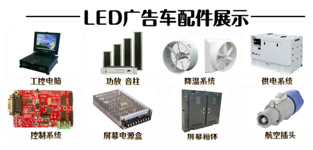 廣告車選裝配置:客戶可根據(jù)需求選裝屏幕清晰度(P10彩屏、P8彩屏、P6彩屏、P5彩屏、P4彩屏)、單面彩屏、