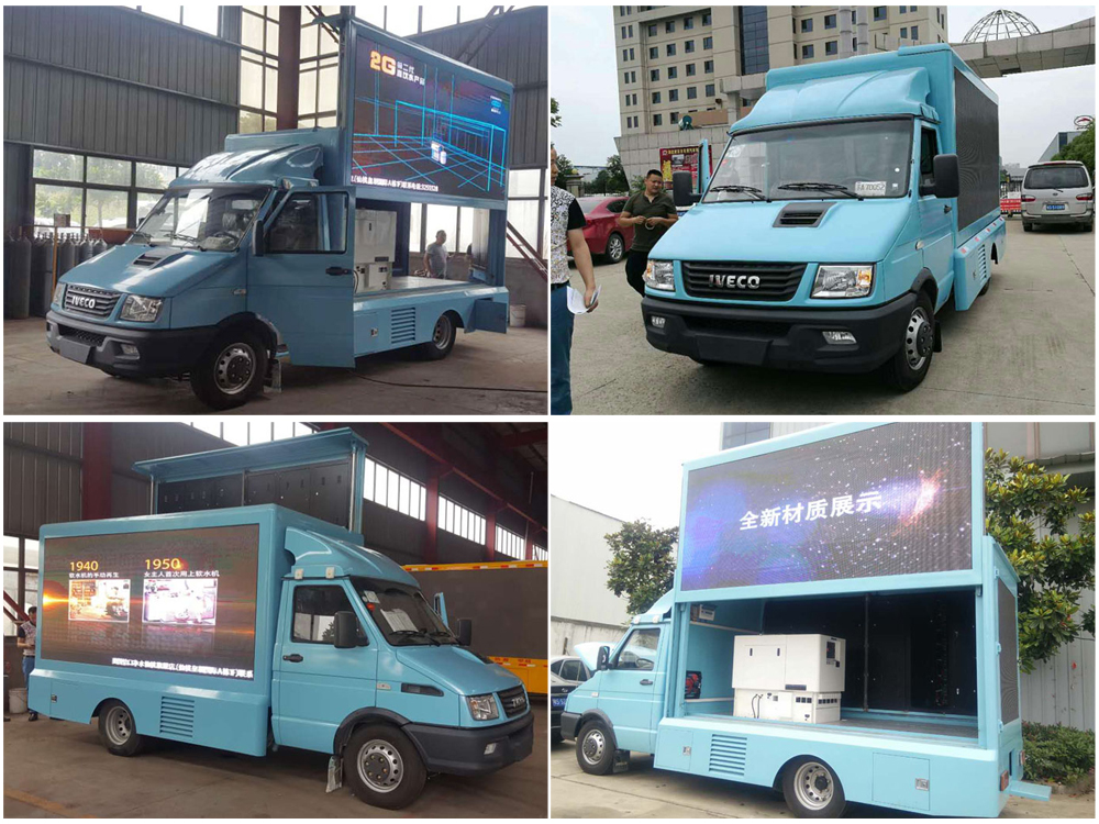 廣告車選裝配置:客戶可根據(jù)需求選裝屏幕清晰度(P10彩屏、P8彩屏、P6彩屏、P5彩屏、P4彩屏)、單面彩屏、雙面彩屏、雙面